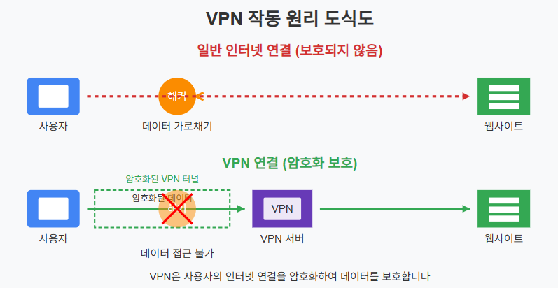 VPN(Virtual Private Network)은 인터넷 연결을 암호화하여 제3자로부터 여러분의 온라인 활동을 보호하는 도구입니다. 공용 와이파이를 사용할 때 개인정보를 보호하고, 지역 제한 콘텐츠에 접근하며, 인터넷 검열을 우회하는 등 다양한 용도로 활용됩니다.